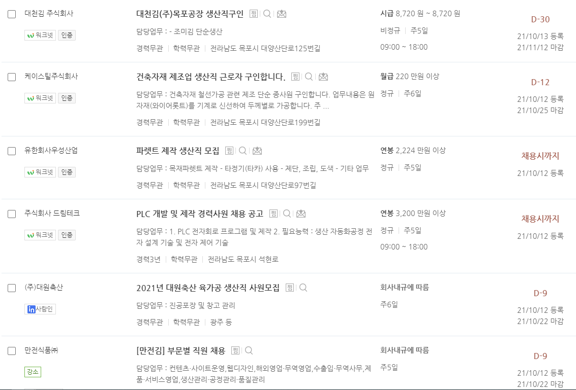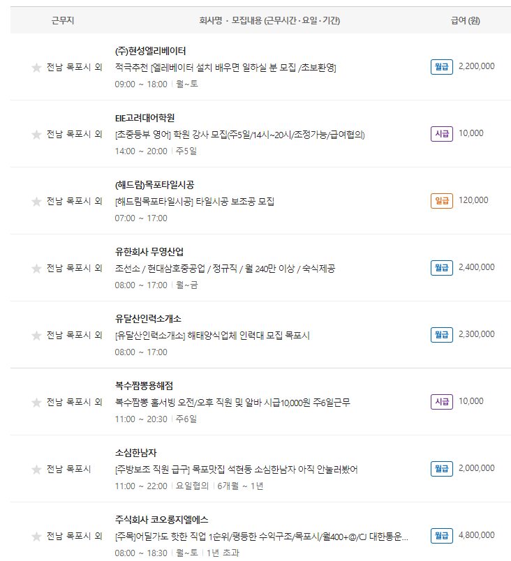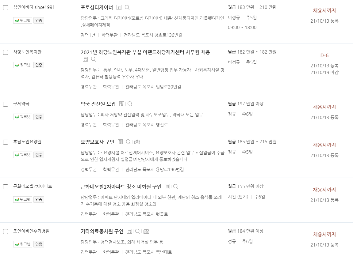 목포시 중장년 일자리 워크넷 목포시청 벼룩시장 구인구직 정보