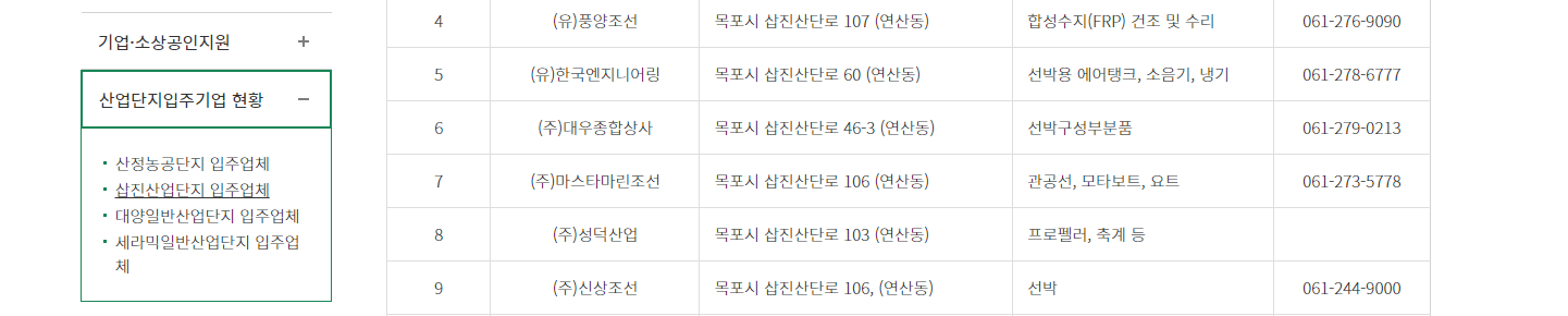 목퐁는 산정농공단지, 삽진농공단지, 대양일반 산업단지, 세라믹 일반산업단지가 있으며, 선박부터 부품산업까지 다양한 생산 제조 공장이 있습니다.