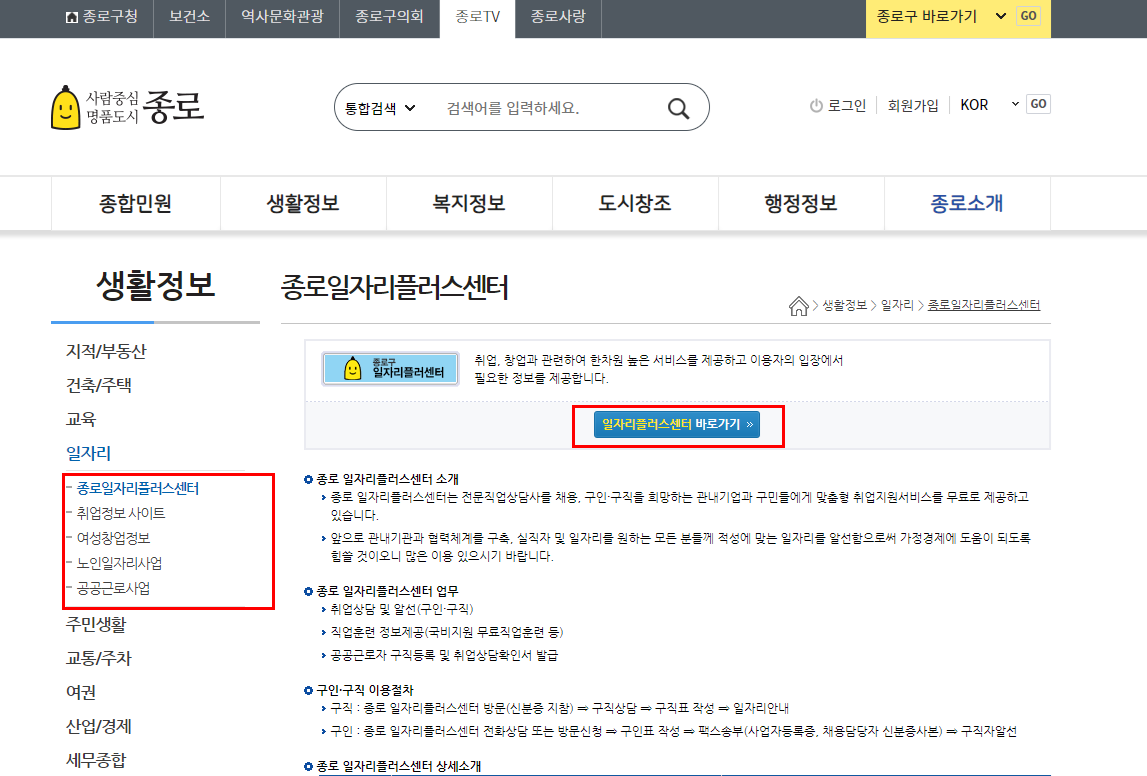 종로구청 일자리 알아보기