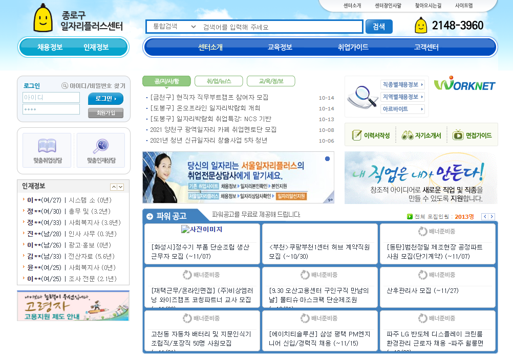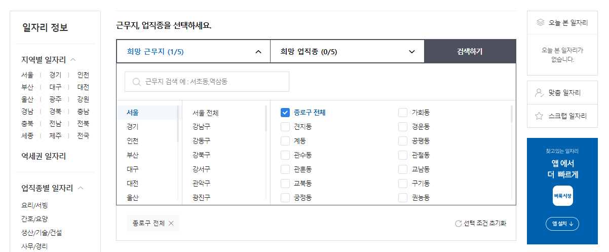 종로구청 워크넷 일자리 알아보기
