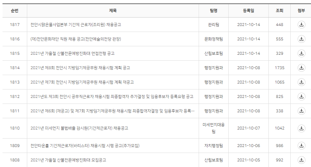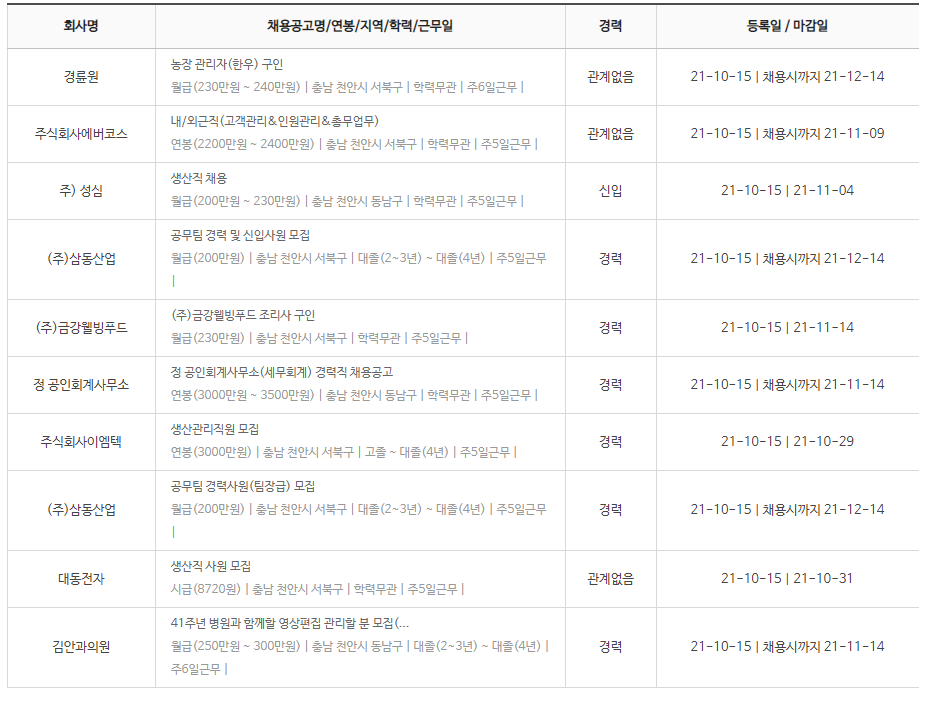 천안시 중장년 일자리 워크넷 천안시청 벼룩시장 구인구직 정보