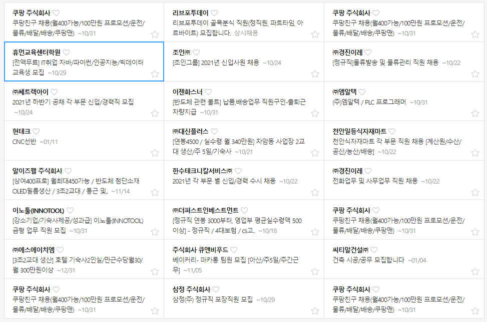 포스팅시점에 약 1000여개 이상의 일자리가 있습니다. 참고하시기 바랍니다.