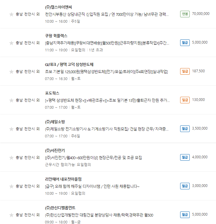 천안시 잡코리아 일자리 알아보기