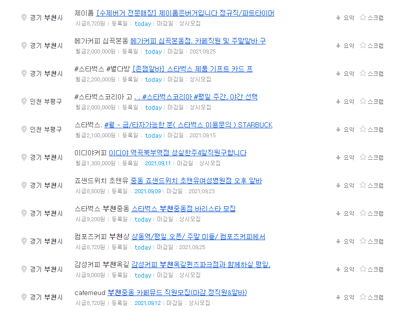 부천에는 부천역사와 송내 문화거리등의 상업시설이 많이 있습니다. 젋은 유동층 인구도 많은 편이기도 합니다. 이번에는 알바몬을 통해서 알바 일자리에 대해서 알아보겠습니다.