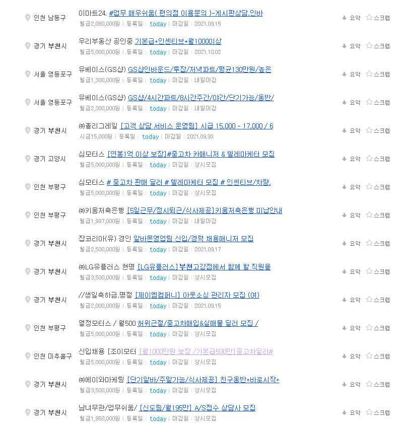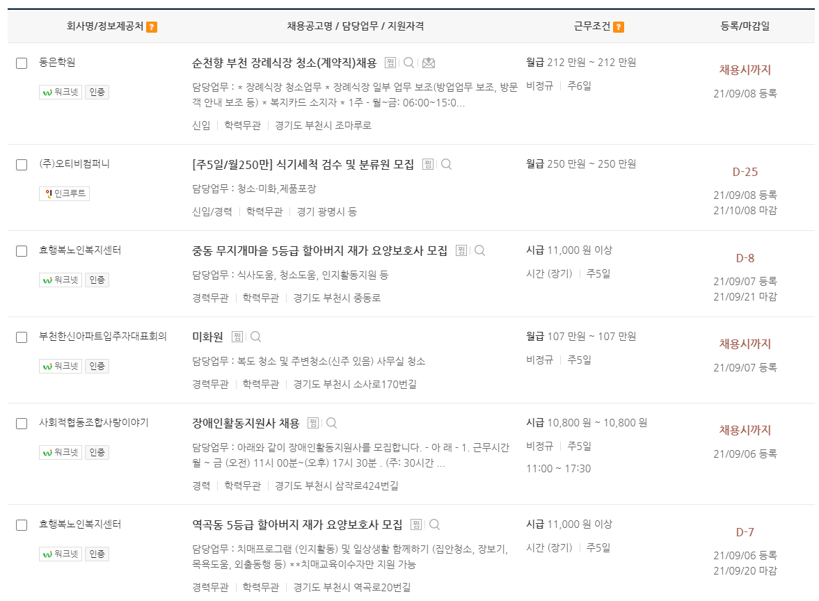 부천 일자리 알바 벼룩시장 구인 구직 정보