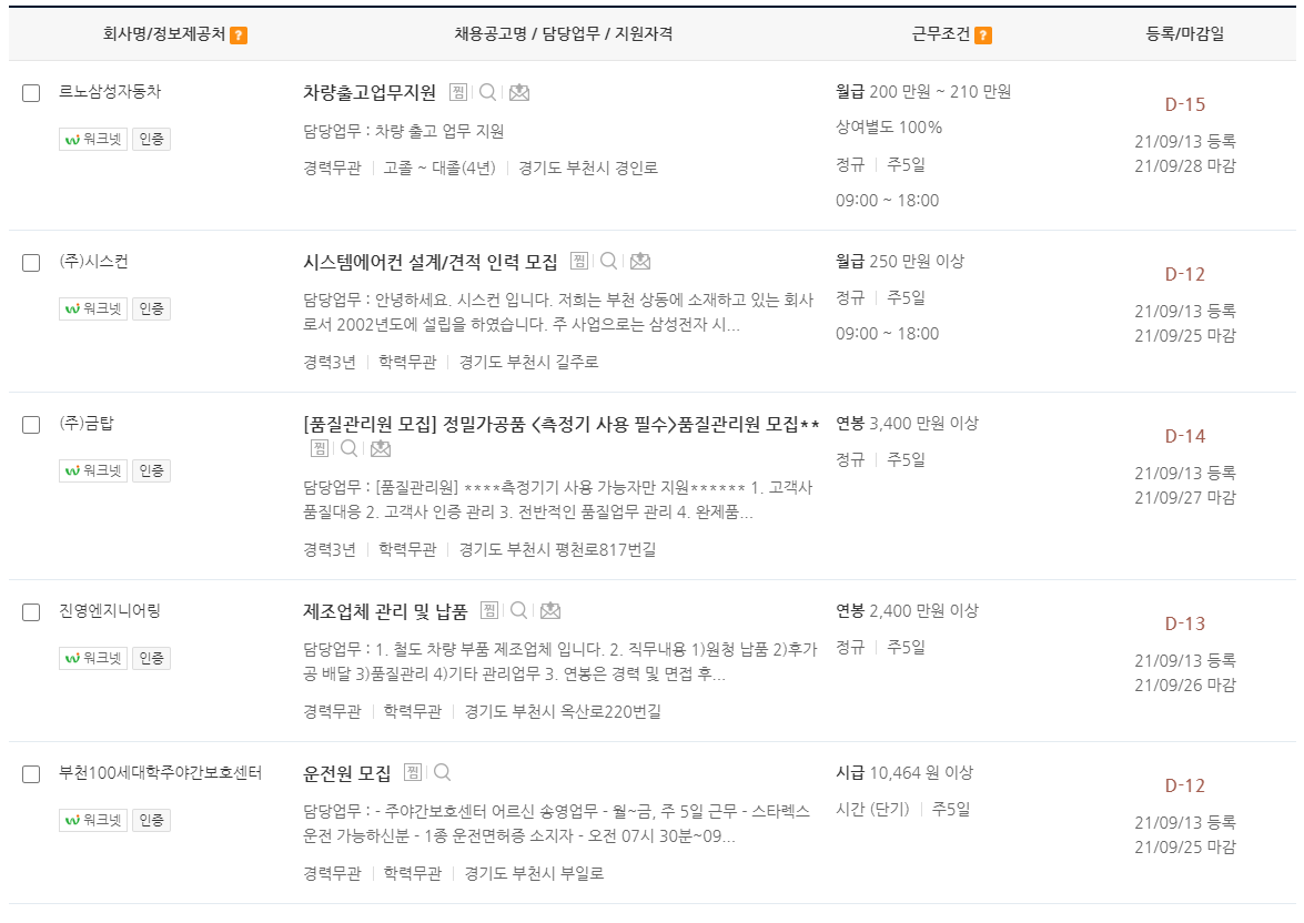 부천 일자리정보