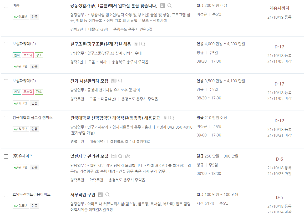 충북 충주시 중장년 일자리 워크넷 충주시청 벼룩시장 구인구직 정보