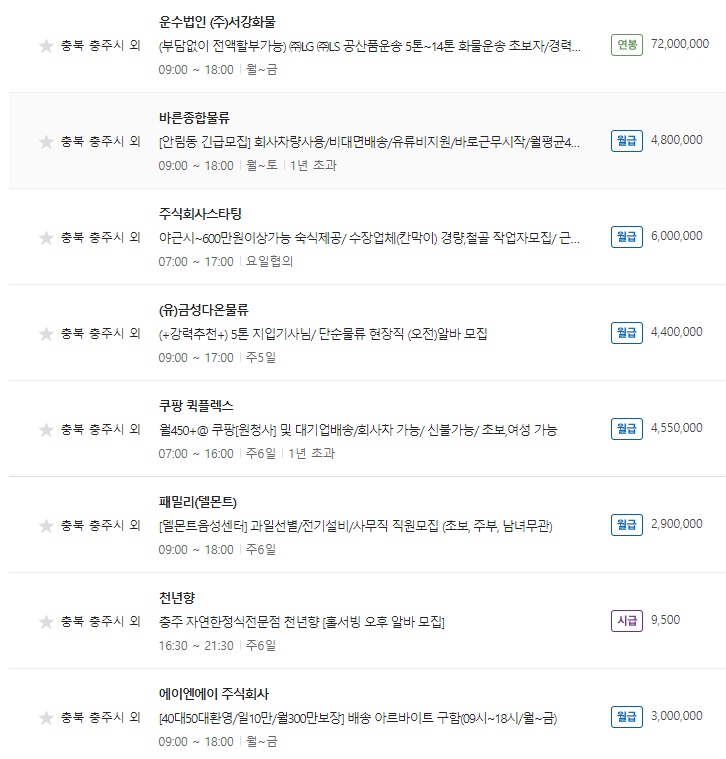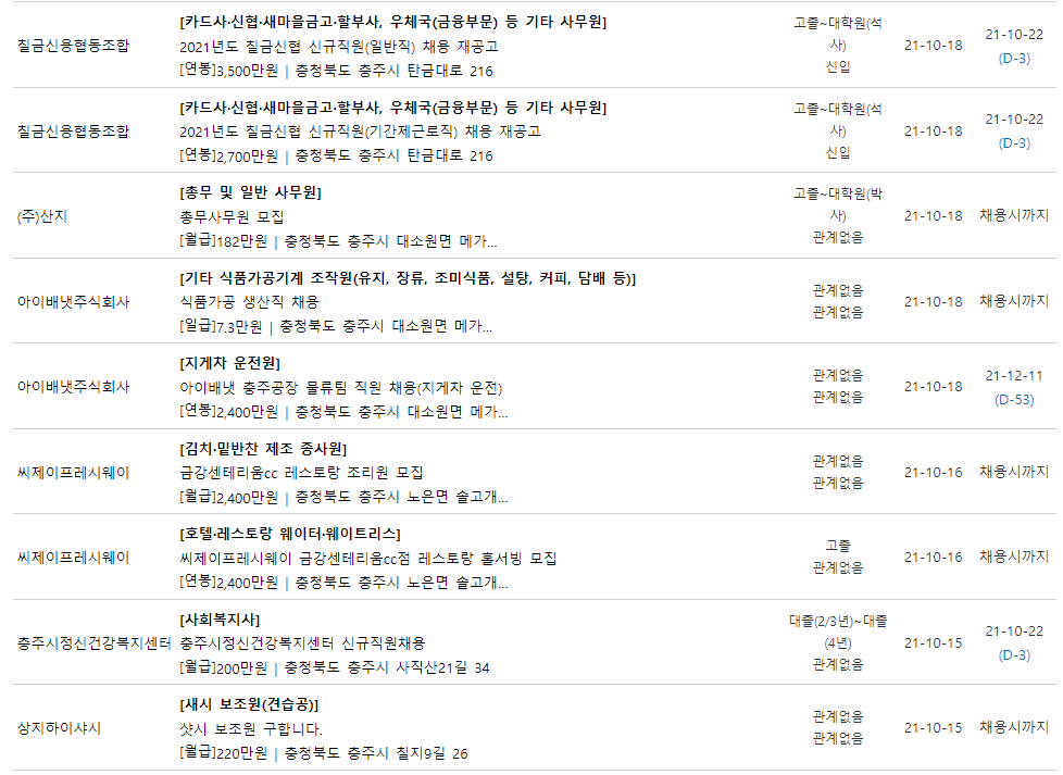 ③ 포스팅 시점에 약 650여건의 일자리가 있습니다. 충주시 뿐만 아니라 인근지역의 일자리도 같이 검색하시면 보다 폭 넓게 본인이 원하는 일자리를 찾으실 수 있습니다.