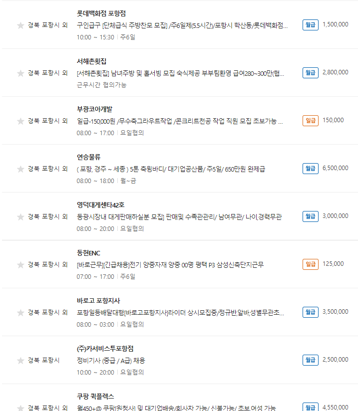 포스팅시점 포항시 남구, 북구의 일자리는 1,100여건이 있습니다. 참고하시기 바랍니다.