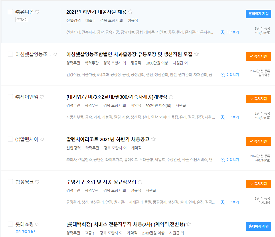 지역을 불문하고 나이와 직무중심으로 채용하는 민간기업의 채용정보를 알기 위해서는 잡코리아, 알바몬, 알바천국, 사람인, 인디드, 메디컬잡, 시설 잡 등의 잡포털 사이트를 통해서 정보를 얻을 수 있습니다.