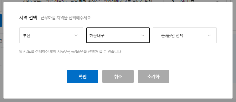 ② 지역검색에서 부산 > 해운대구를 선택합니다.