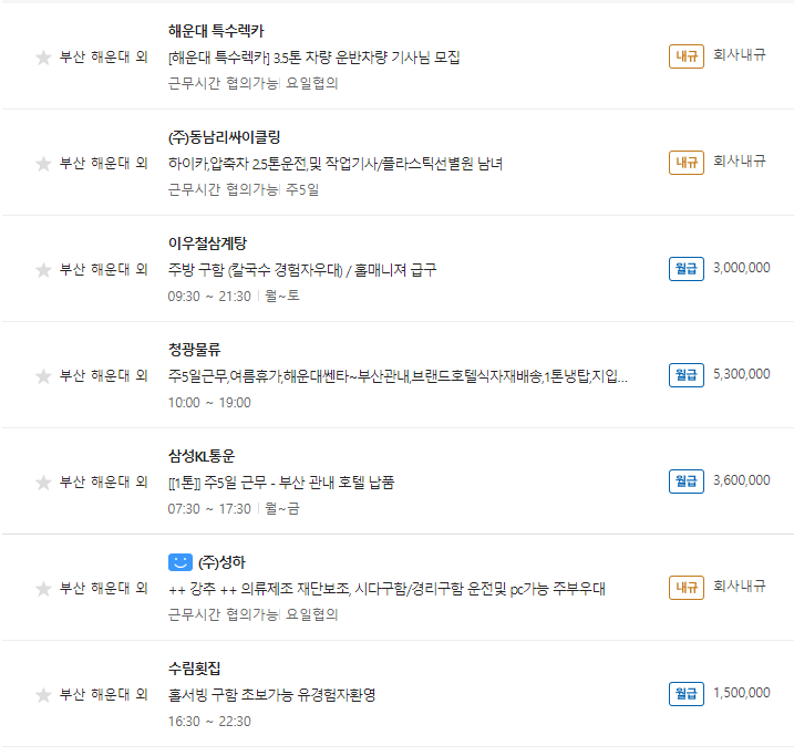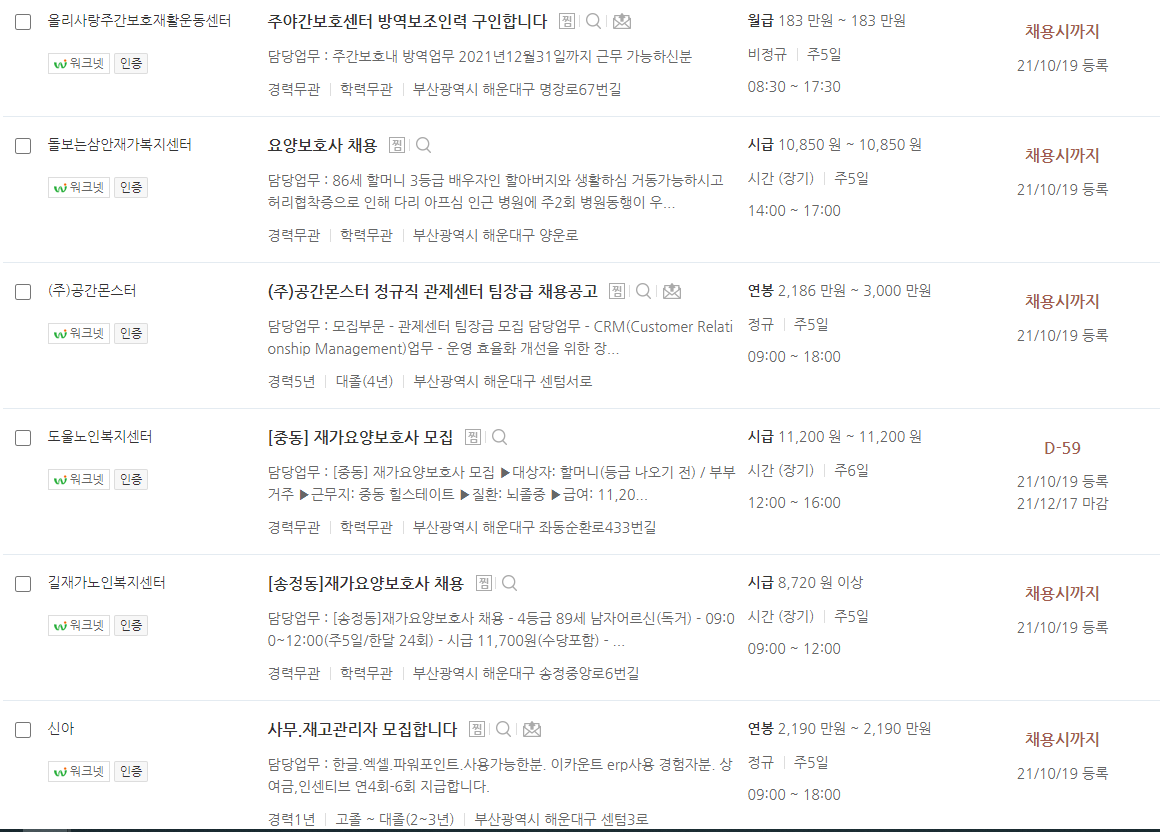 해운대구 중장년 일자리 워크넷 해운대구 벼룩시장 구인구직 정보