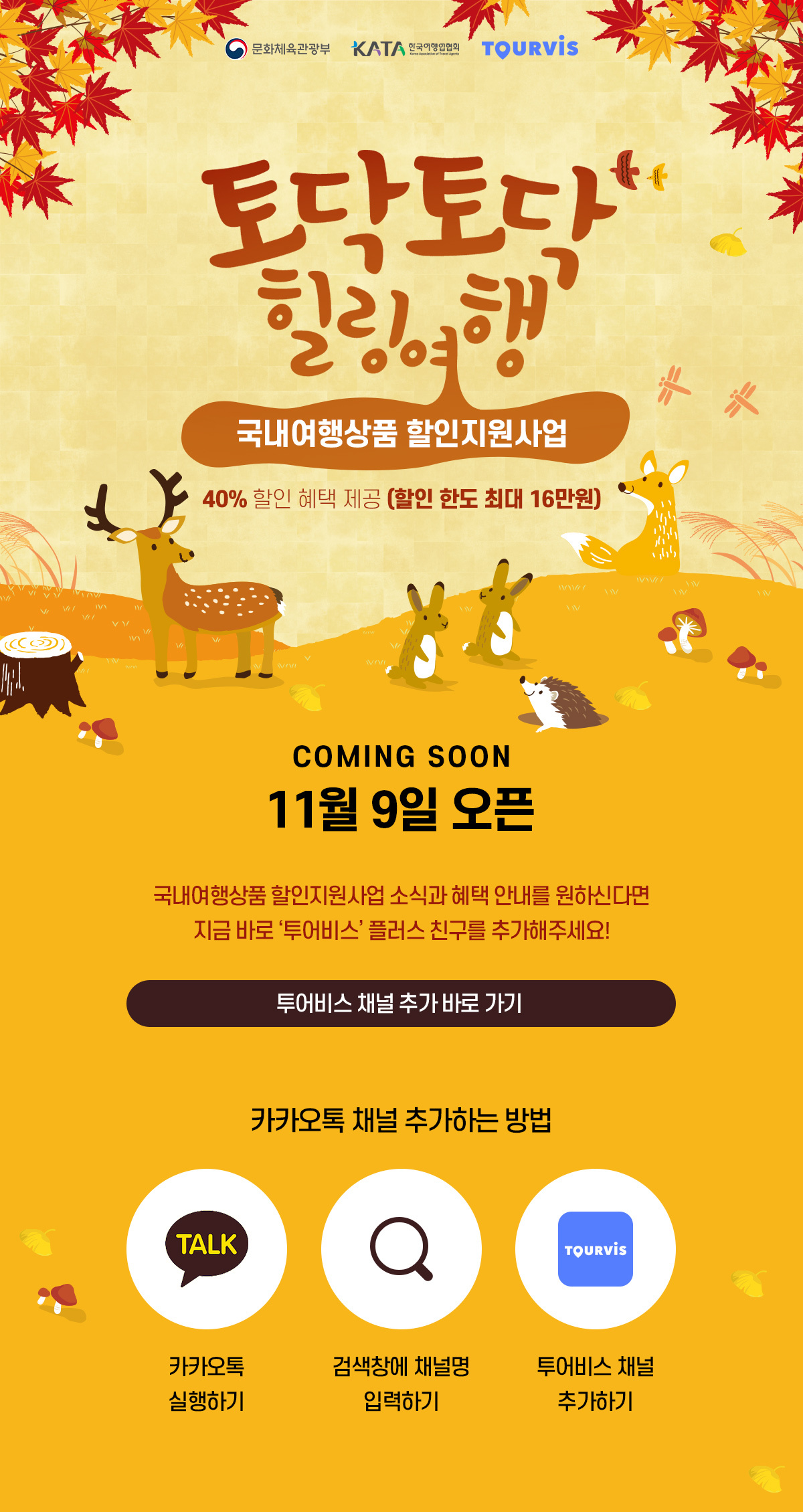 - 여행쿠폰 : 상품공모, 선정등으로 11월 중순쯤 재계예정 (세부내용 하단 참고)