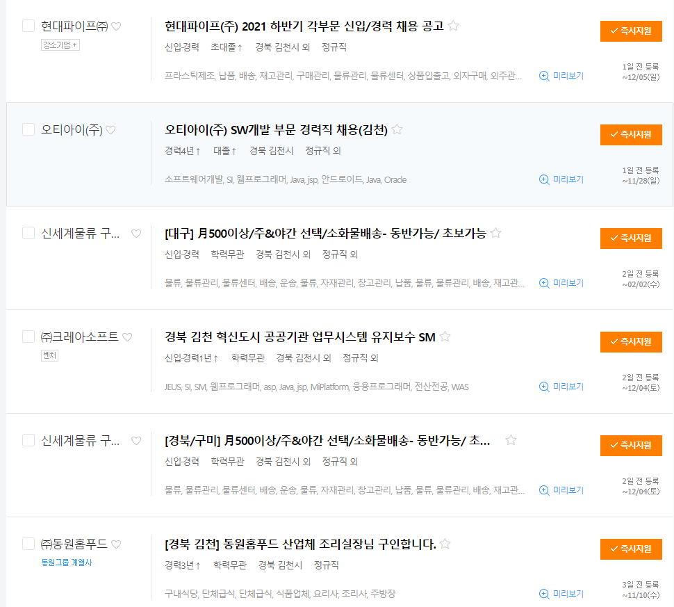 포스팅 시점에 약 400여건의 일자리가 있습니다. 참고하시기 바랍니다.