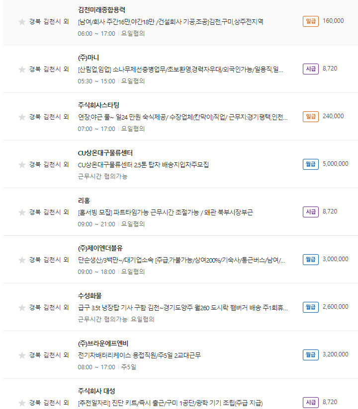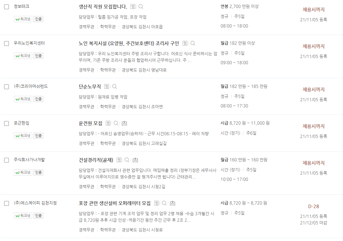 경북 김천시 중장년 일자리 워크넷 김천시 벼룩시장 구인구직 정보