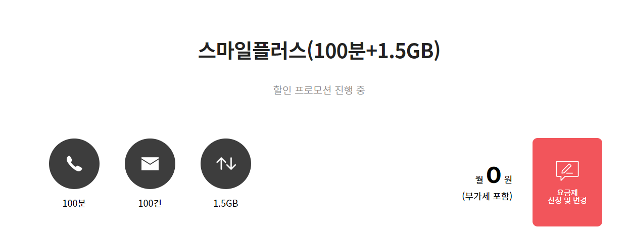 - SKT망 ㅣ 스마일플러스 ㅣ 통화 100분, 문자 100건, 데이터 1.5GB
