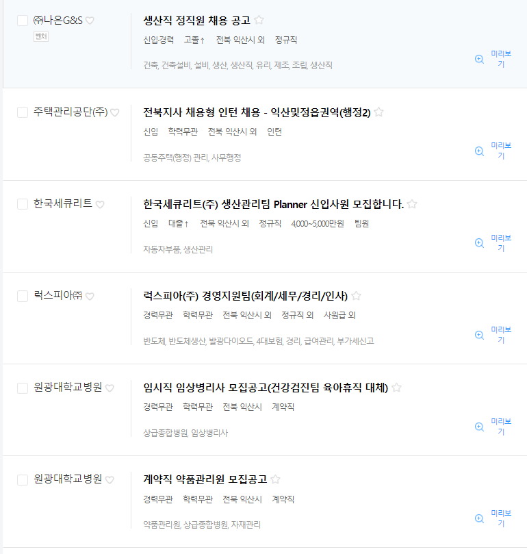 ③ 포스팅 시점에 약 700여건의 일자리가 있습니다. 익산시 뿐만 아니라 인근지역의 일자리도 같이 검색하시면 보다 폭 넓게 본인이 원하는 일자리를 찾으실 수 있습니다.