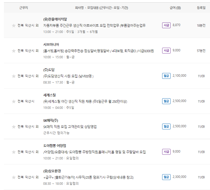 전북 익산시 중장년 일자리 워크넷 익산시 벼룩시장 구인구직 정보