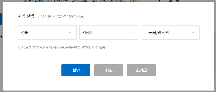 ② 지역검색에서 전북 > 익산시를 선택합니다.
