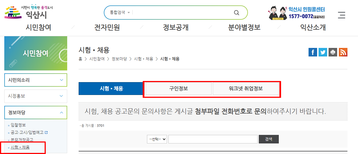 ③ 익산시에서 운영하는 채용정보로 이동하게 됩니다.