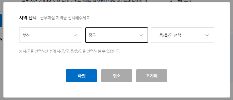 ② 지역검색에서 부산 > 중구를 선택합니다.
