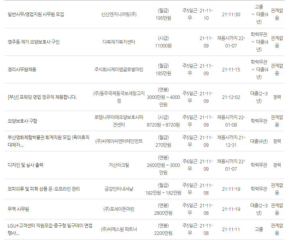 부산 중구 워크넷 일자리 알아보기