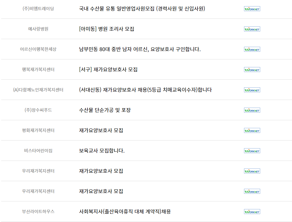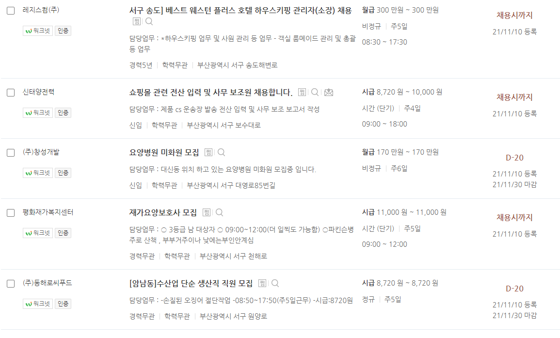 부산 서구 워크넷 일자리 알아보기