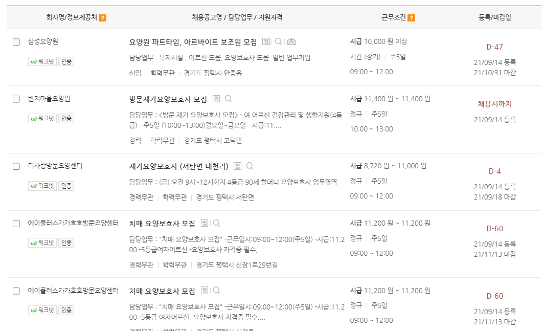 지역을 불문하고 나이와 직무중심으로 채용하는 민간기업의 채용정보를 알기 위해서는 잡코리아, 알바몬, 알바천국, 사람인, 인디드, 메디컬잡, 시설잡, 드리이버스등 잡포털 사이트를 통해서 정보를 얻을 수 있습니다.