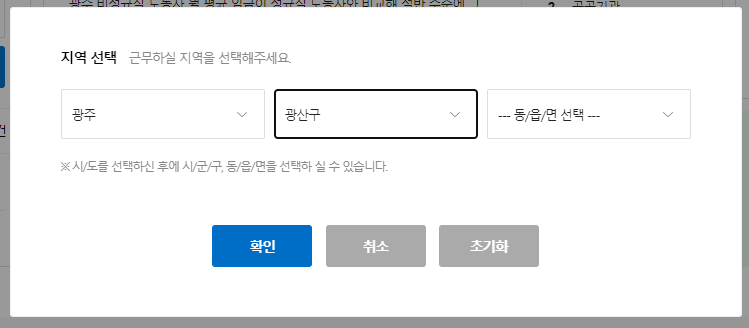② 지역검색에서 광주> 광산구를 선택합니다.