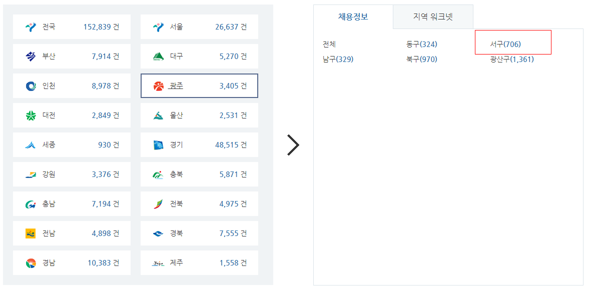 광산구청의 일자리정보는 워크넷과 연계되어 운영됩니다. 지역워크넷을 통해서 광산구의 일자리에 대해서 알아보겠습니다.