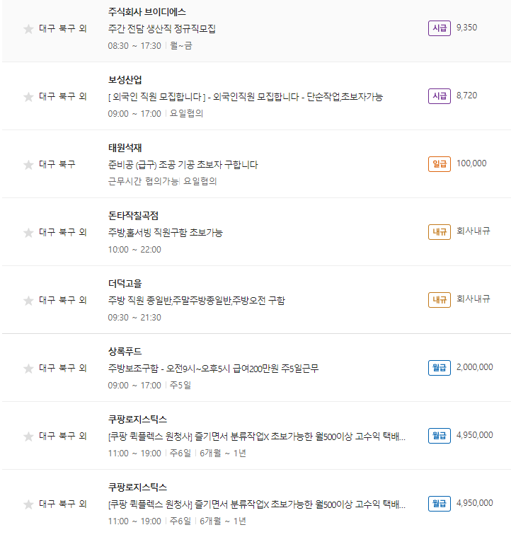 대구 북구 벼룩시장 일자리 알아보기