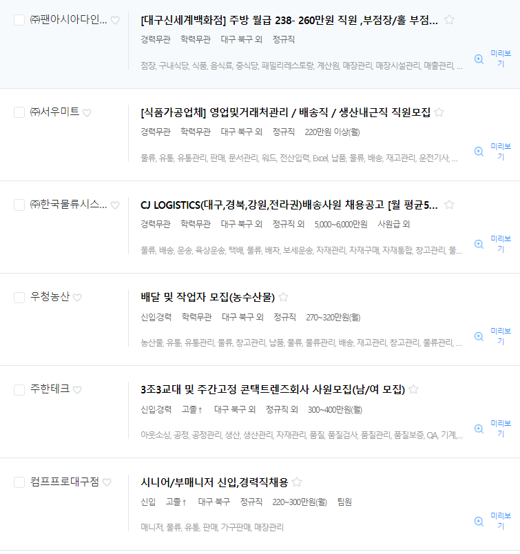 대구 북구 잡코리아 일자리 알아보기