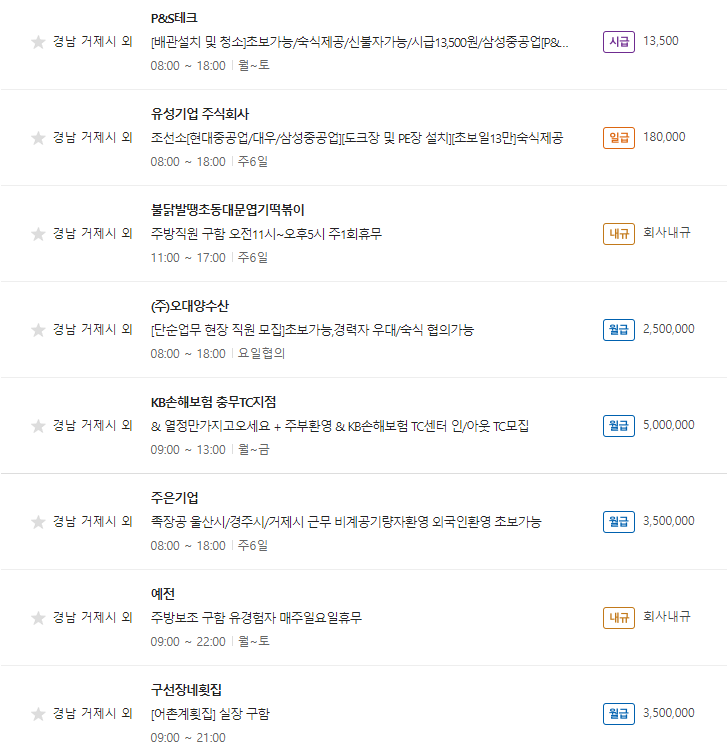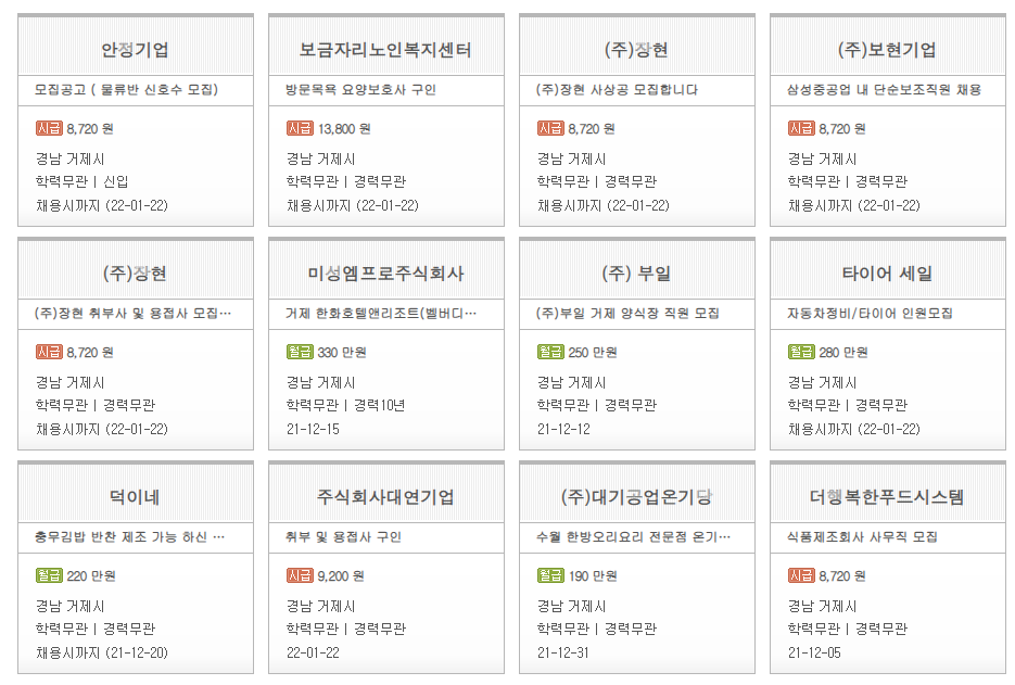 포스팅 시점에서 거제시 민간 채용정보와 일자리센터 안내되어 있는 대표적인 구직정보를 확인해 보겠습니다.