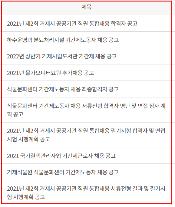 경남 거제시청에서 제공하는 채용정보와, 공공일자리를 알아보겠습니다.