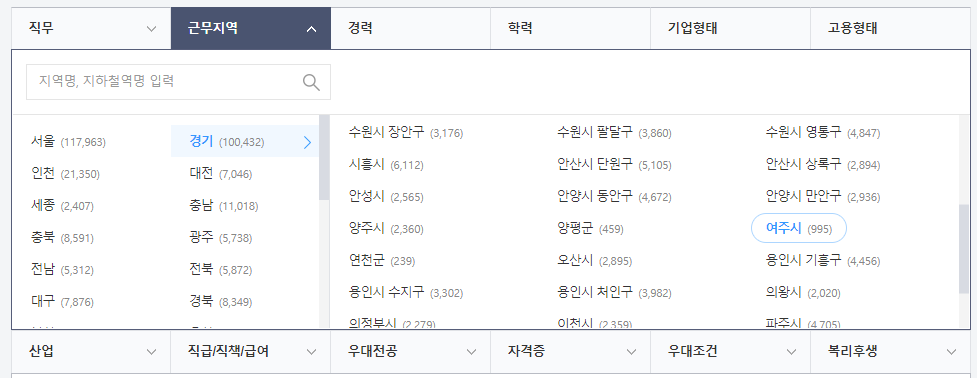 여주는 인근 이천 및 경기도 인근지역으로 이동하기가 수월합니다. 따라서, 여주 뿐만 아니라 인근지역의 일자리도 많이 검색됩니다.
