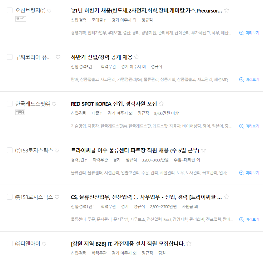 여주시청에서 게시돼 공공일자리외 희망하는 민간일자리를 찾으시려면 민간 취업사이트를 같이 활용하시는 것이 효과적입니다.