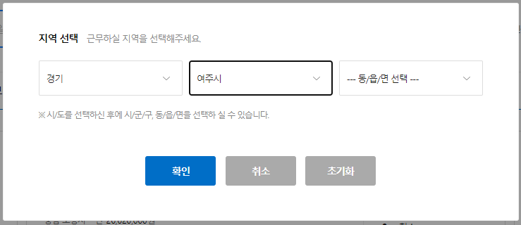 먼저, 벼룩시장에 접속 > 지역선택에서 경기도 > 여주시를 선택하시면 됩니다.