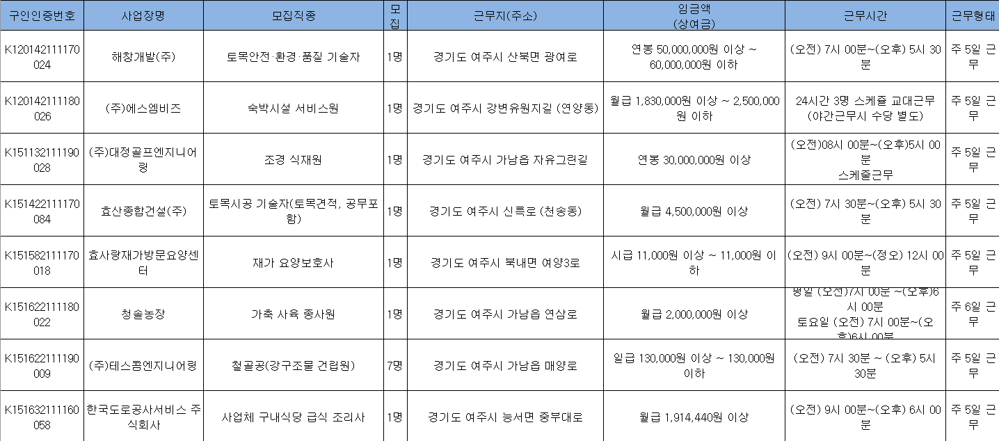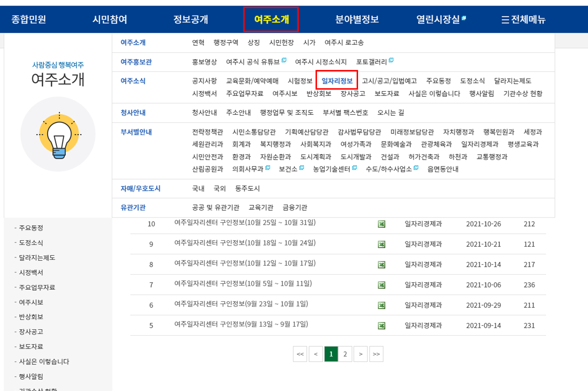 여주시청에서 제공하는 일자리는 아래를 통해 확인해보세요.