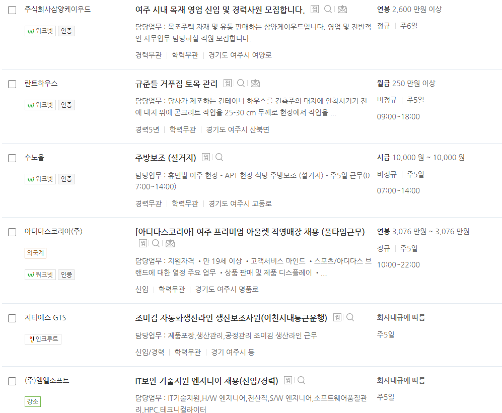 경기도 여주시의 취업정보나 워크넷 취업사이트를 직접 접속하셔서 구인정보를 찾아보셔도 됩니다.