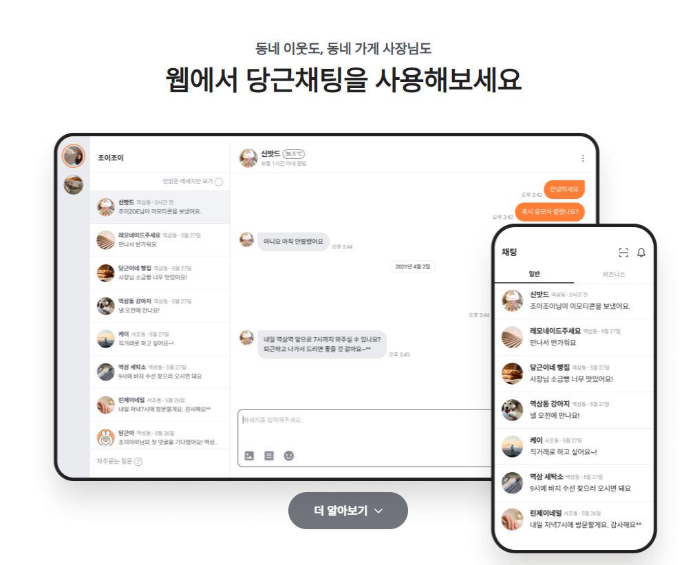 중고 거래부터 동네 정보까지, 이웃과 함께해요. 가깝고 따뜻한 당신의 근처를 만들어요.