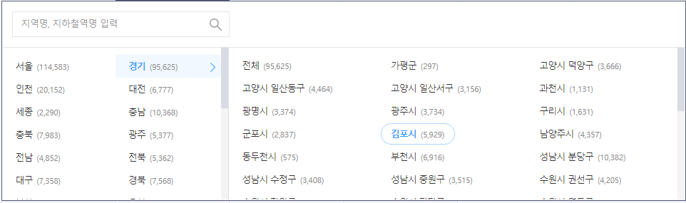 먼저, 벼룩시장에 접속 > 지역선택에서 경기도 > 김포시를 선택하시면 됩니다.