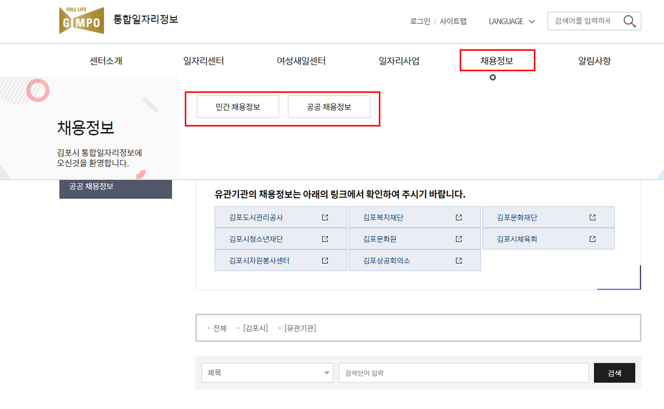 김포시청에서 제공하는 채용정보와 공공일자리를 알아보겠습니다.