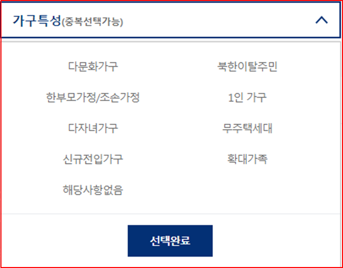 가구특성도 아래와 같이 본인에 맞는 조건을 선태하시면 됩니다.