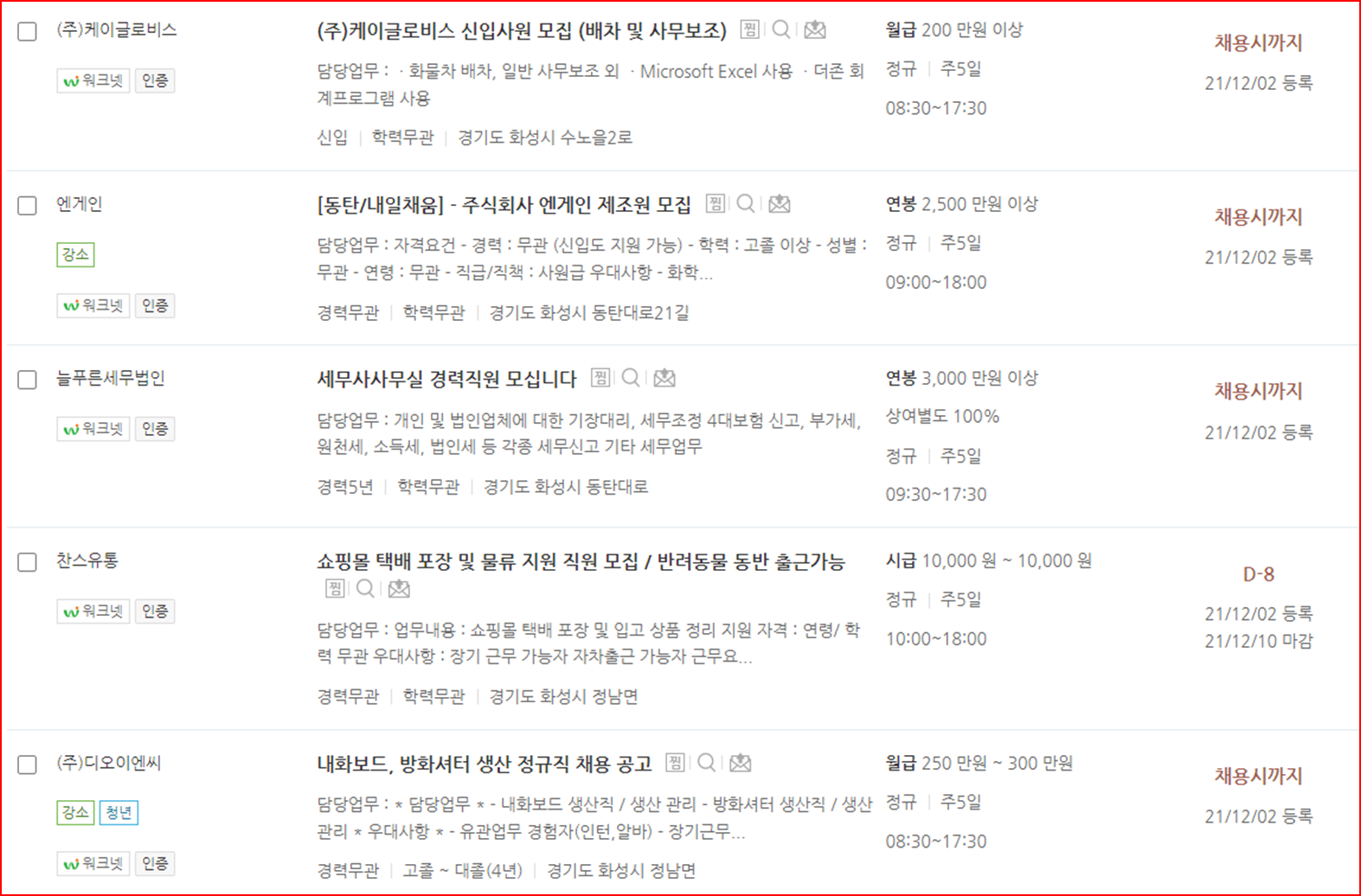 화성시의 취업정보는 워크넷 취업사이트를 직접 접속하셔서 구인정보를 찾아보셔도 됩니다.