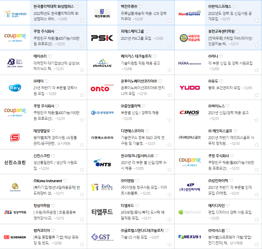 잡코리아등에서 제공하는 일자리는 공기업 채용, 민간기업 중심의 채용으로 이루어져 있습니다.