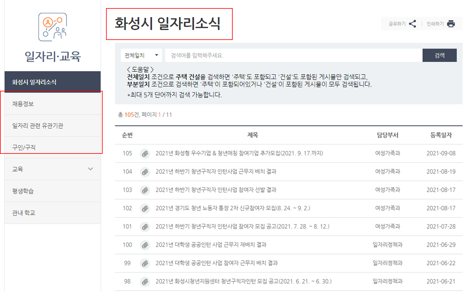화성시청에서 제공하는 일자리는 아래를 통해 확인해보세요.