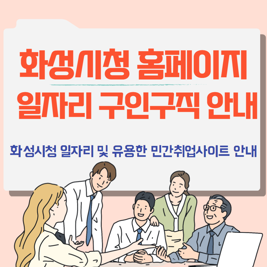 화성시청 홈페이지 채용정보외에 민간기업의 취업사이트인 잡코리아, 알바몬, 알바천국, 사람인, 인디드, 메디컬잡, 시설잡 등을 통해서 원하는 일자리를 찾아보세요.