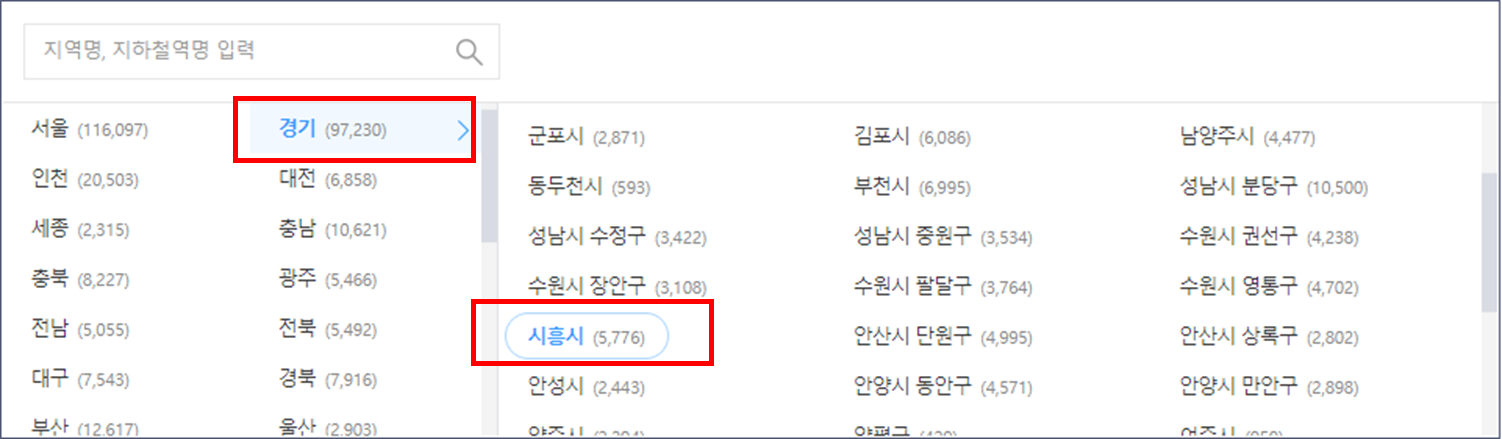 먼저, 벼룩시장에 접속 > 지역선택에서 경기도 >시흥시를 선택하시면 됩니다.