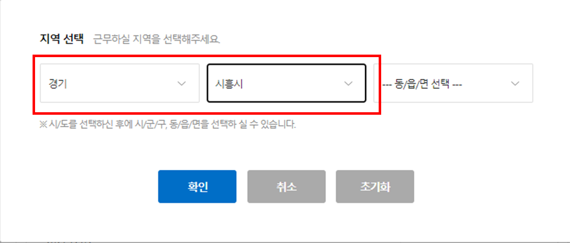 먼저, 잡코리아에 접속 > 지역별 세부메뉴에서 경기도, 시흥시를 선택하시면 됩니다.