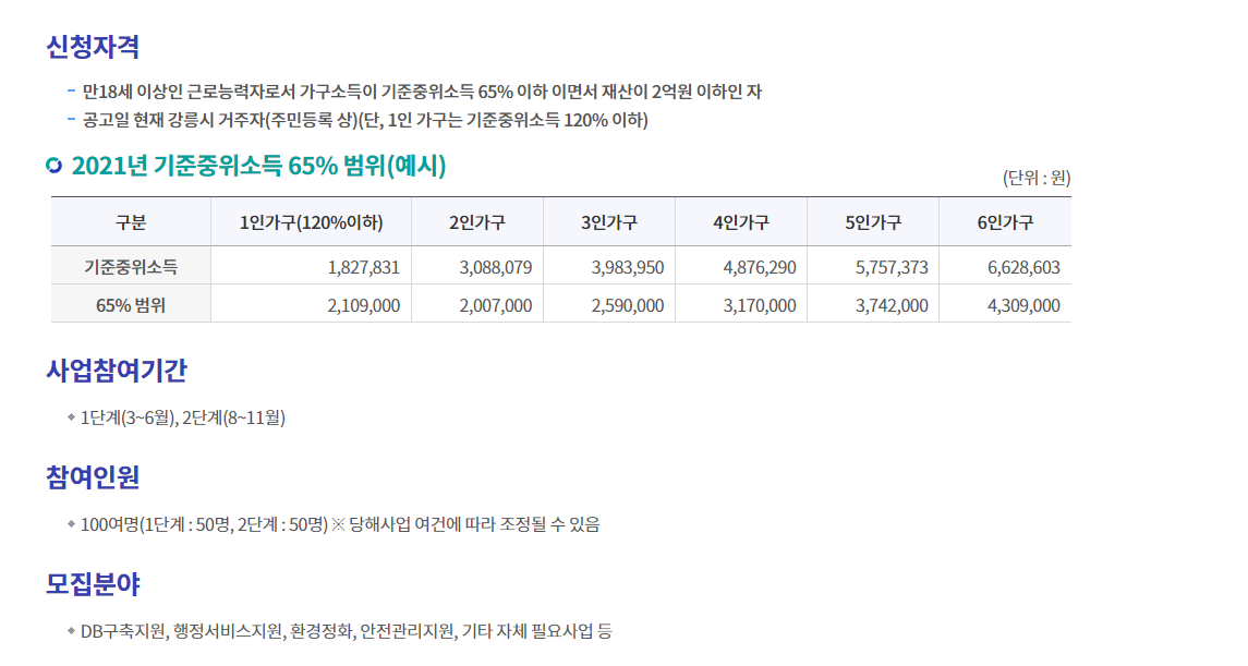 ① 공공부분 일자리에 대해서 알아보겠습니다. 강릉시 공공근로는 포스팅시점으로 사업참여기간이 아닙니다.